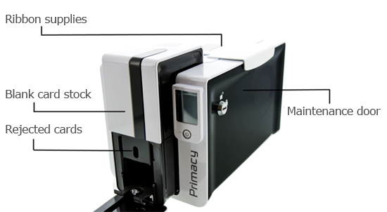 علاوه بر جلوگیری از استفاده غیرمجاز از پرینتر، سیستم قفل نصبشده روی Primacy تهدید سرقت کارتهای شناسایی و مواد مصرفی را نیز از بین میبرد. این سیستم که از فلز مقاوم ساخته شده، نقاط دسترسی به مهمترین اجزای پرینتر را ایمن میکند، از جمله: